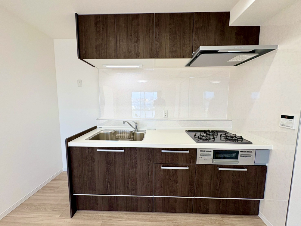【新規交換】システムキッチン、浴室乾燥機、ユニットバス、洗面化粧台、温水洗浄機能付きトイレ、洗濯機防水パン、建具、クッションフロア張替え、クロス張替え、ダウンライト設置、ガス給湯器、フローリング張替え、カーテンレール、(2025年10月完了)