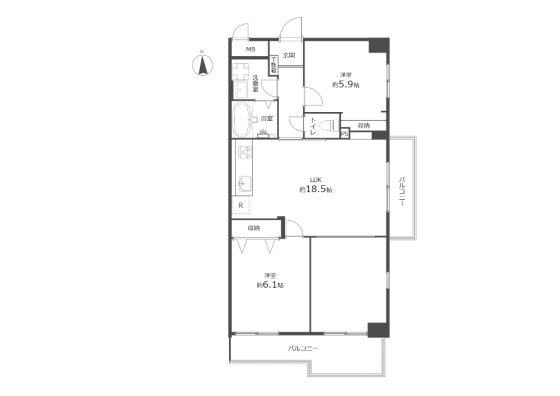 間取内容 LDK18.5帖 洋室6.1帖 洋室5.9帖